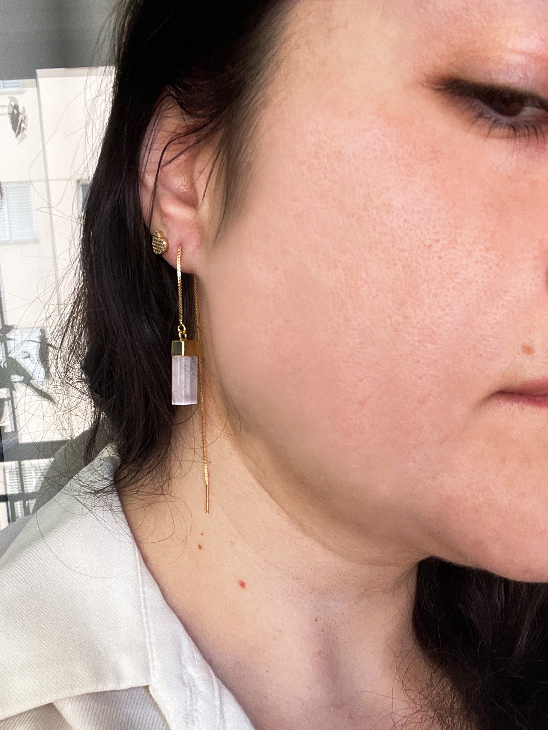 Brincos de Selenita com Banho de Ouro – Pedra da Limpeza Energética e Espiritualidade
