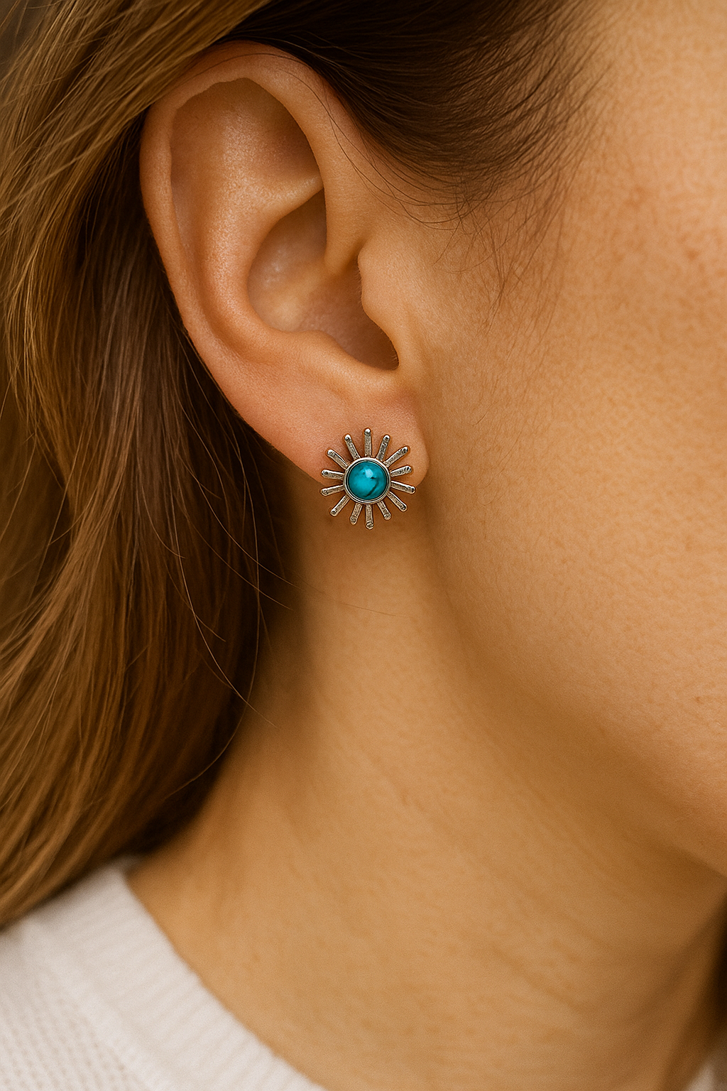 Brincos Sol de Turquesa em Prata 925 | Proteção, Comunicação e Energia Mística
