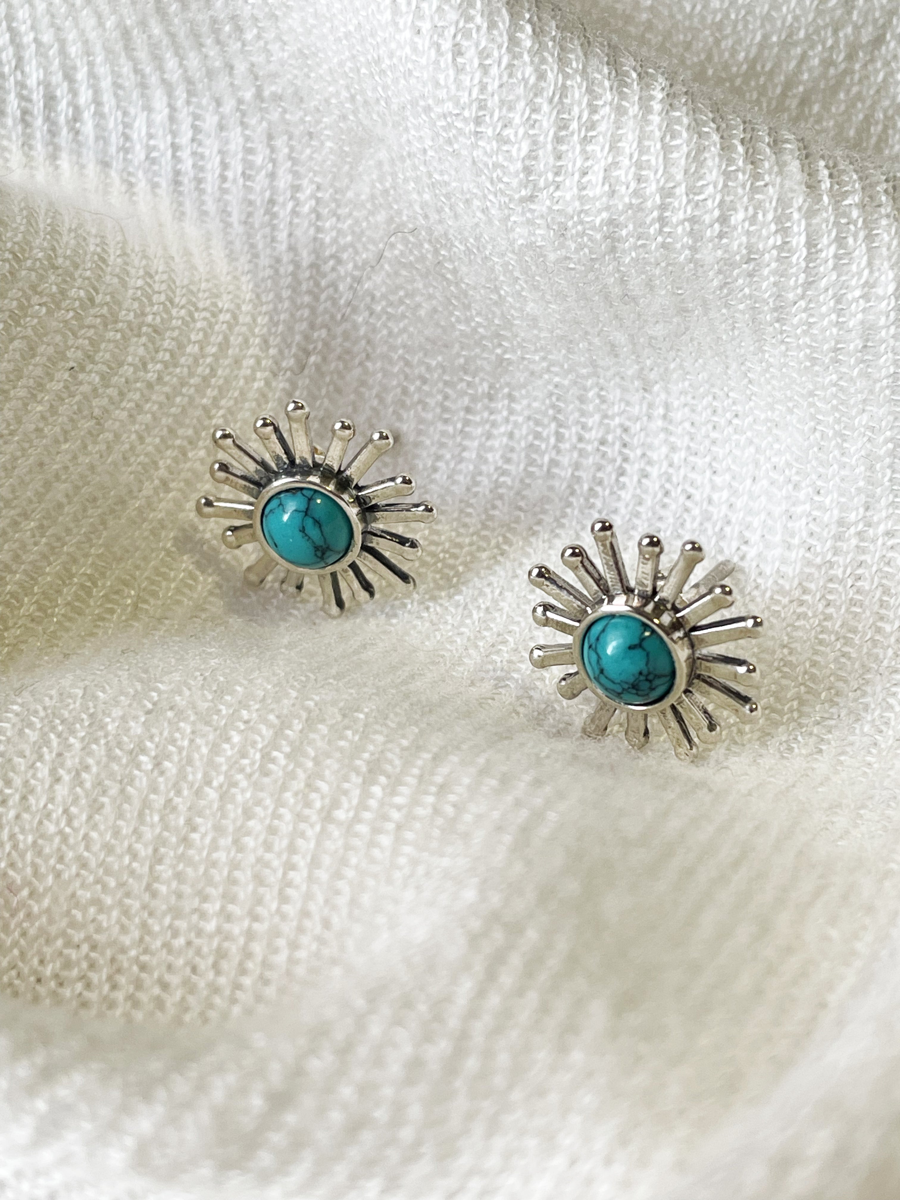 Desperte seu brilho interior com os Brincos Sol de Turquesa em Prata 925 da Curadoria da Bruxona.