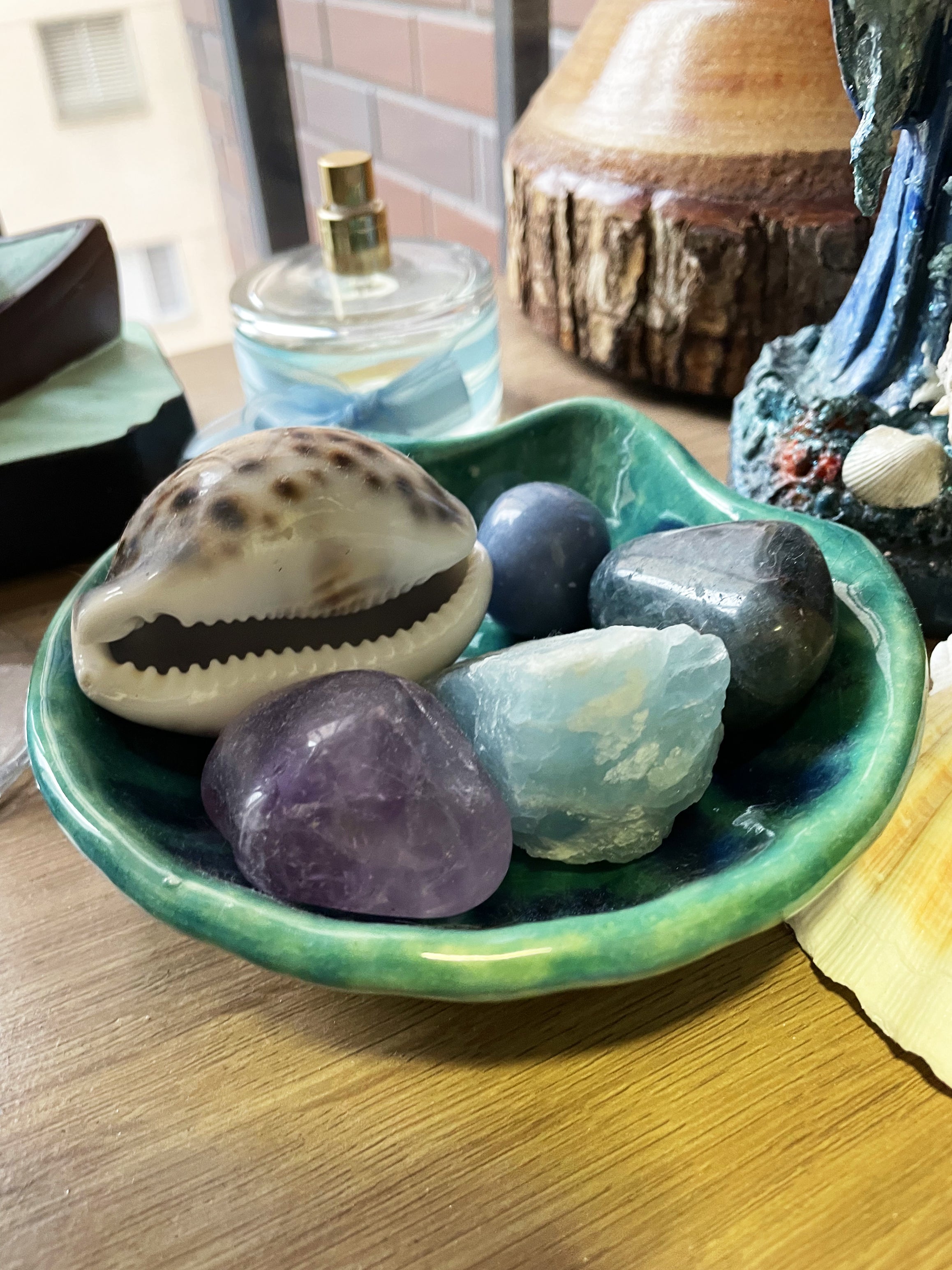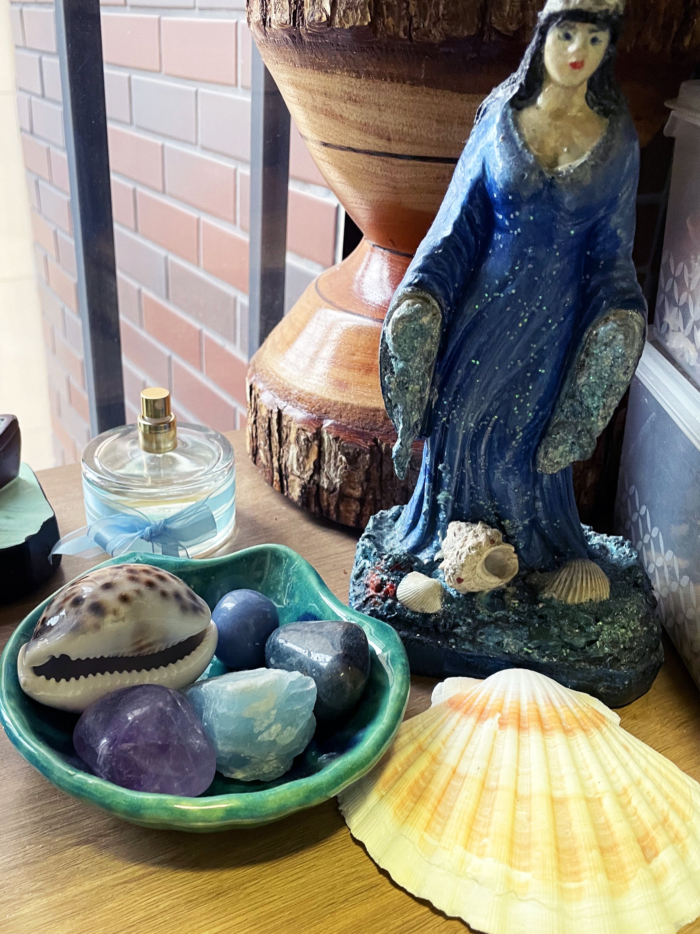 Inspirada na força e beleza de Iemanjá, a concha carrega simbologia ligada à proteção, amor, fertilidade e conexão com as águas. Ideal para ser utilizada como peça decorativa, porta-joias, porta-cristais, suporte para defumações ou como item sagrado em congas e altares.