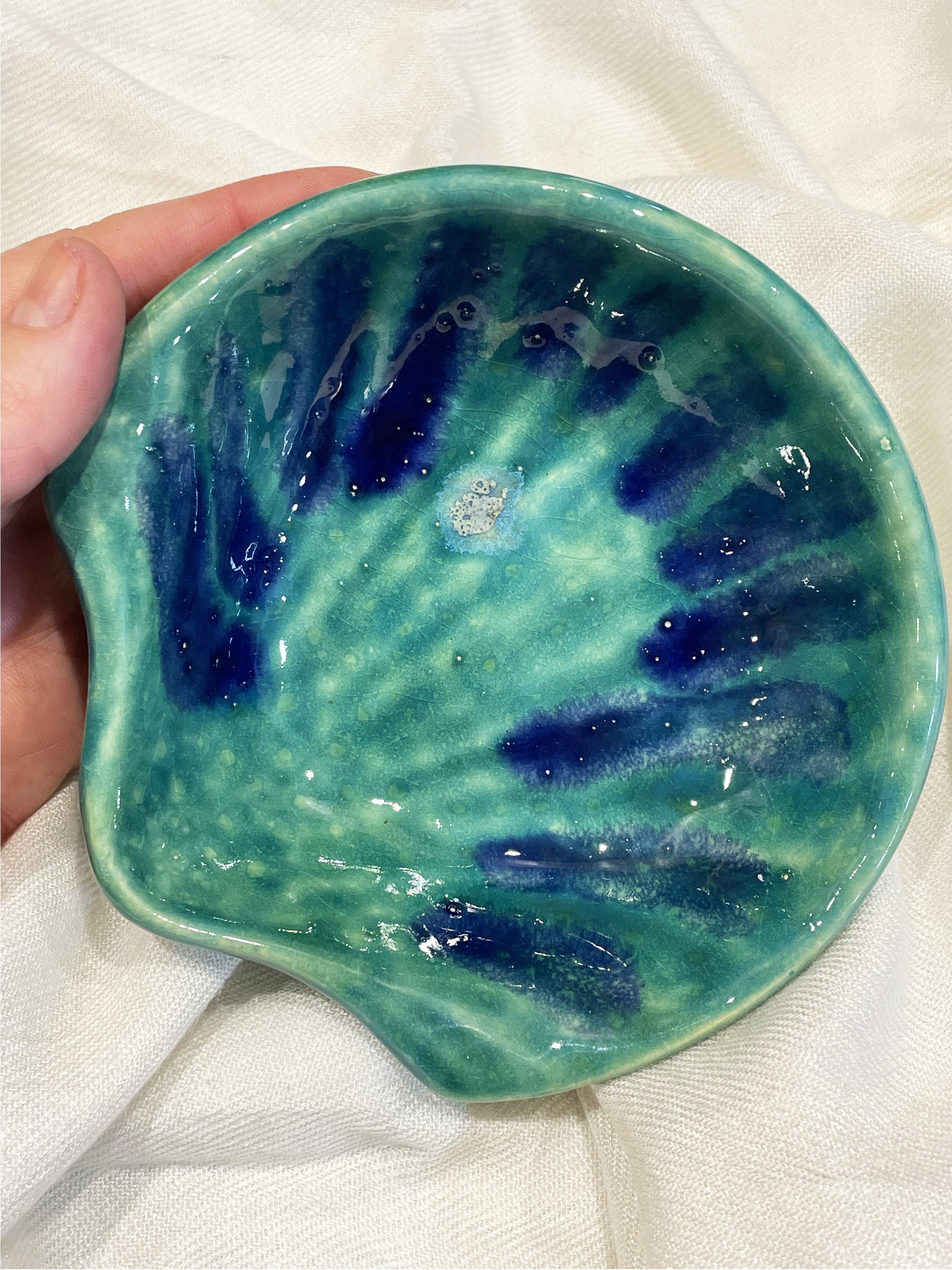 A Concha Iemanjá é uma peça artesanal exclusiva, feita pelo artesão Valtenir – Pai da Bruxona, produzida em cerâmica de alta qualidade, pintada à mão com tinta de efeito especial e queimada em forno.
