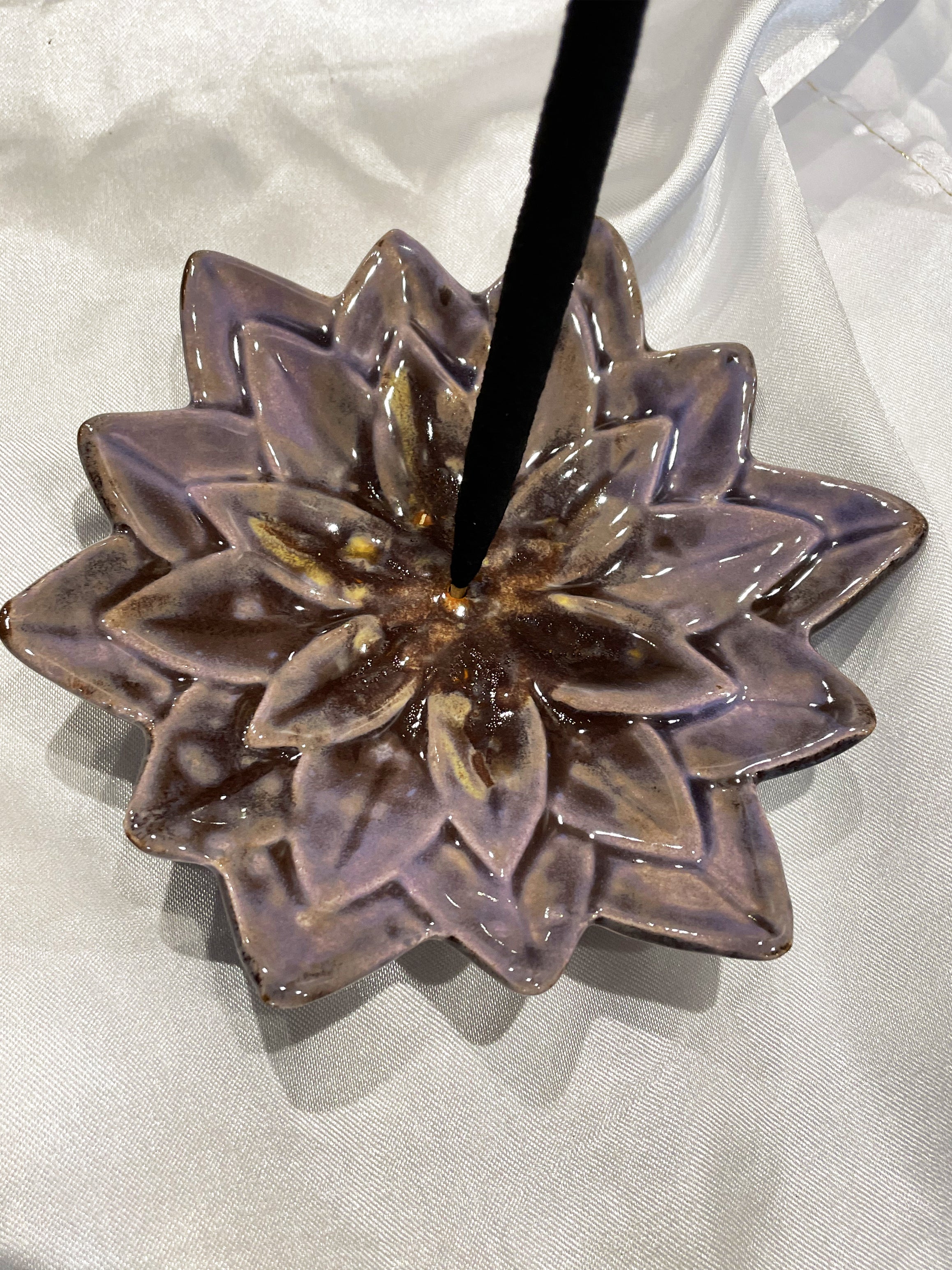 Com um delicado design em formato de lótus, simbolizando pureza e renovação espiritual, é perfeito para apoiar seus incensos em momentos de meditação, rituais, limpeza energética ou simplesmente para decorar seu espaço com beleza e significado.