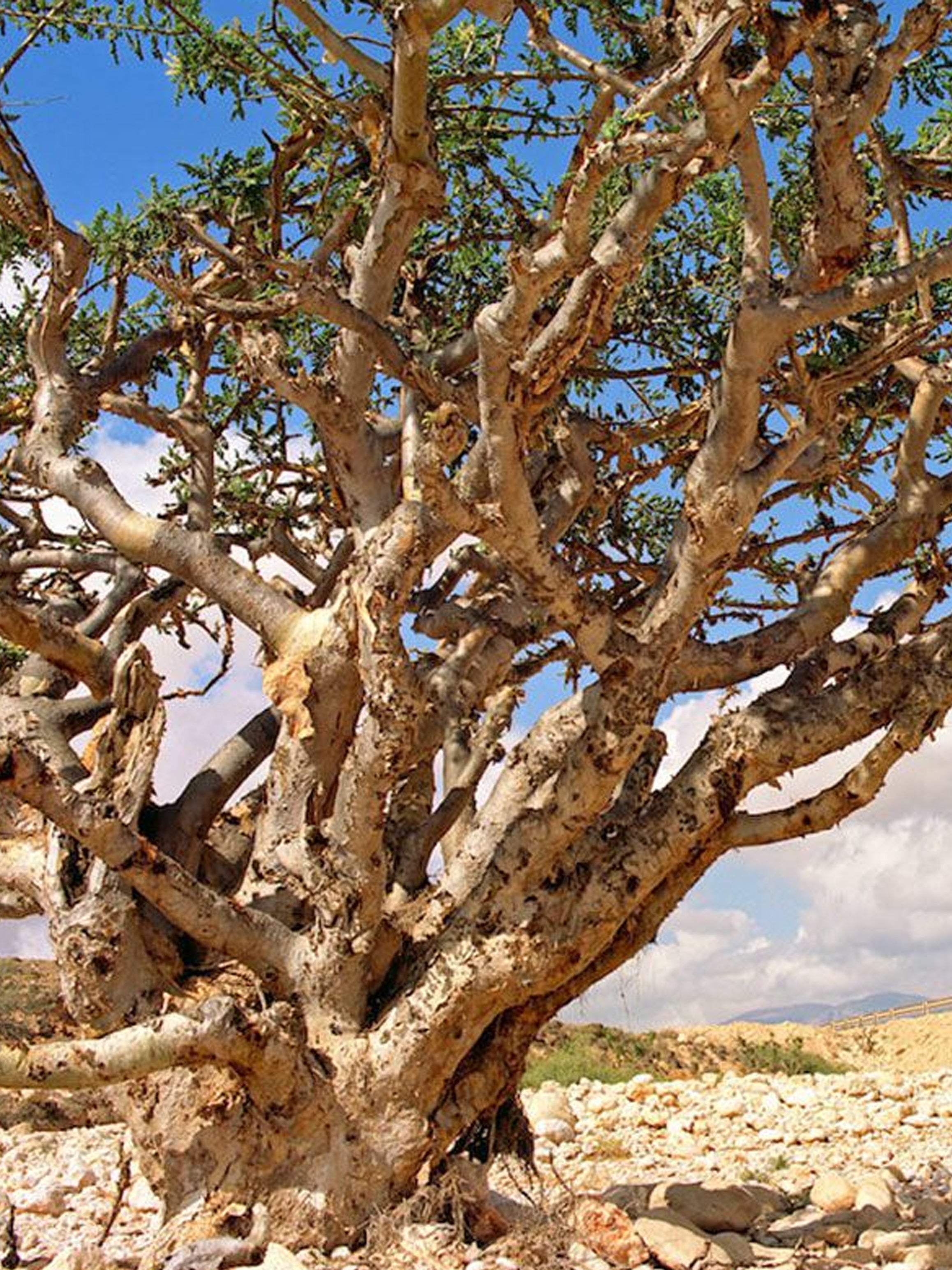 É uma resina que é produzida numa árvore muito comum no Nordeste da África e no Oriente Médio. Diziam os povos da Antiguidade que a defumação com Olíbano ajudava a afastar os maus espíritos, sendo empregada principalmente antes dos rituais sagrados para preparar os ambientes para a oração.
