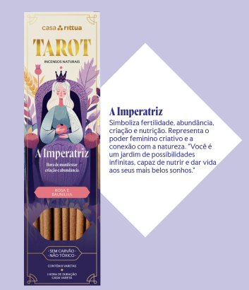 O Incenso Nirvana Casa Rittua – Linha Tarot | A Imperatriz é inspirado no Arcano Maior A Imperatriz, arquétipo da fertilidade, da abundância, da criação e da manifestação em todos os níveis. Este incenso evoca a força feminina, a nutrição da vida e o poder criativo da natureza.
