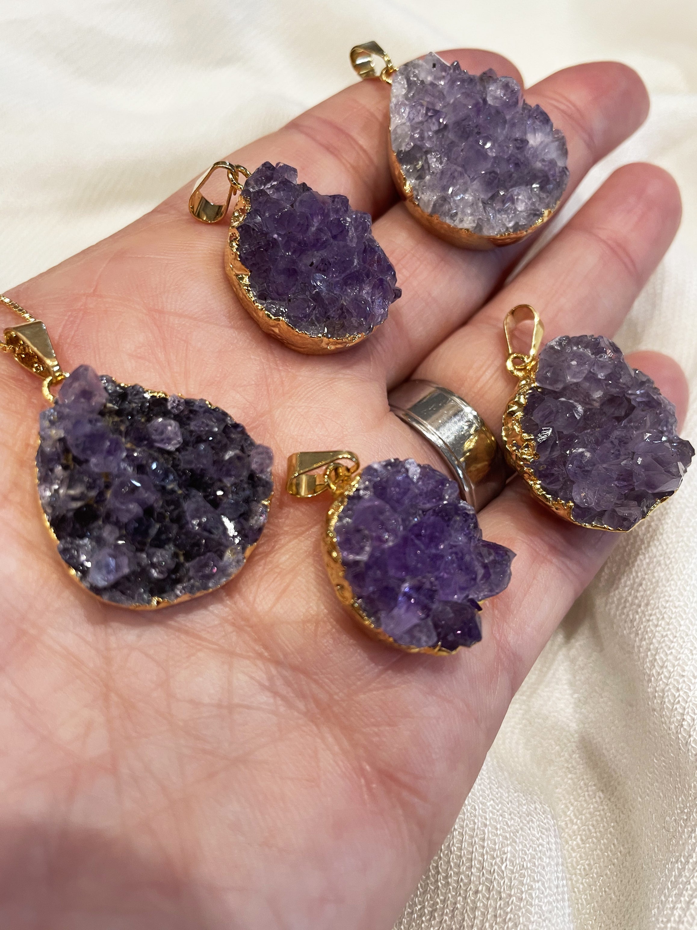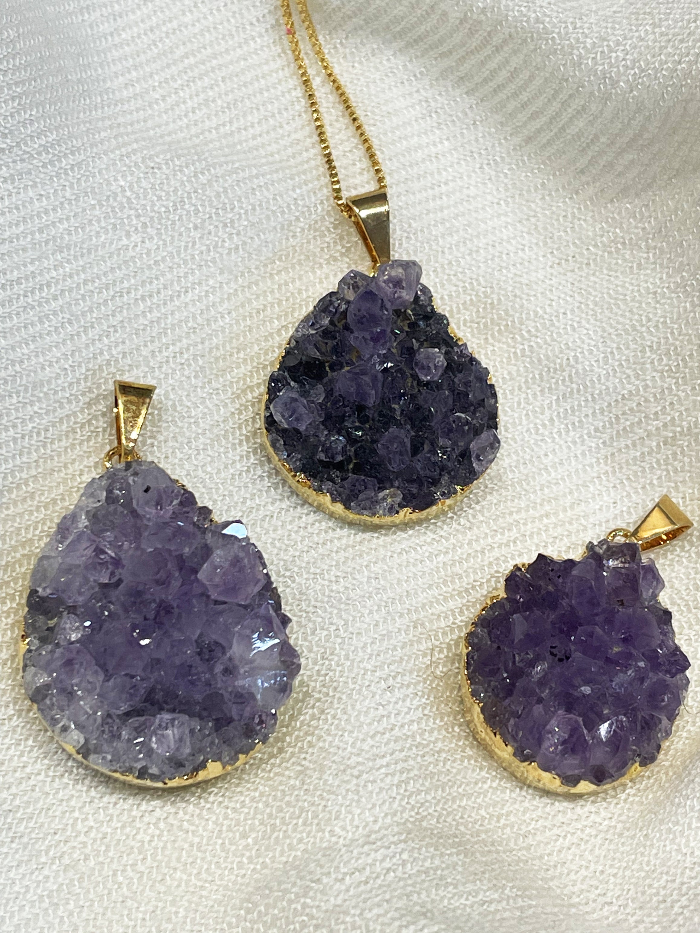 Pingente de Drusa de Ametista com Banho de Ouro – Pedra da Espiritualidade e Transmutação