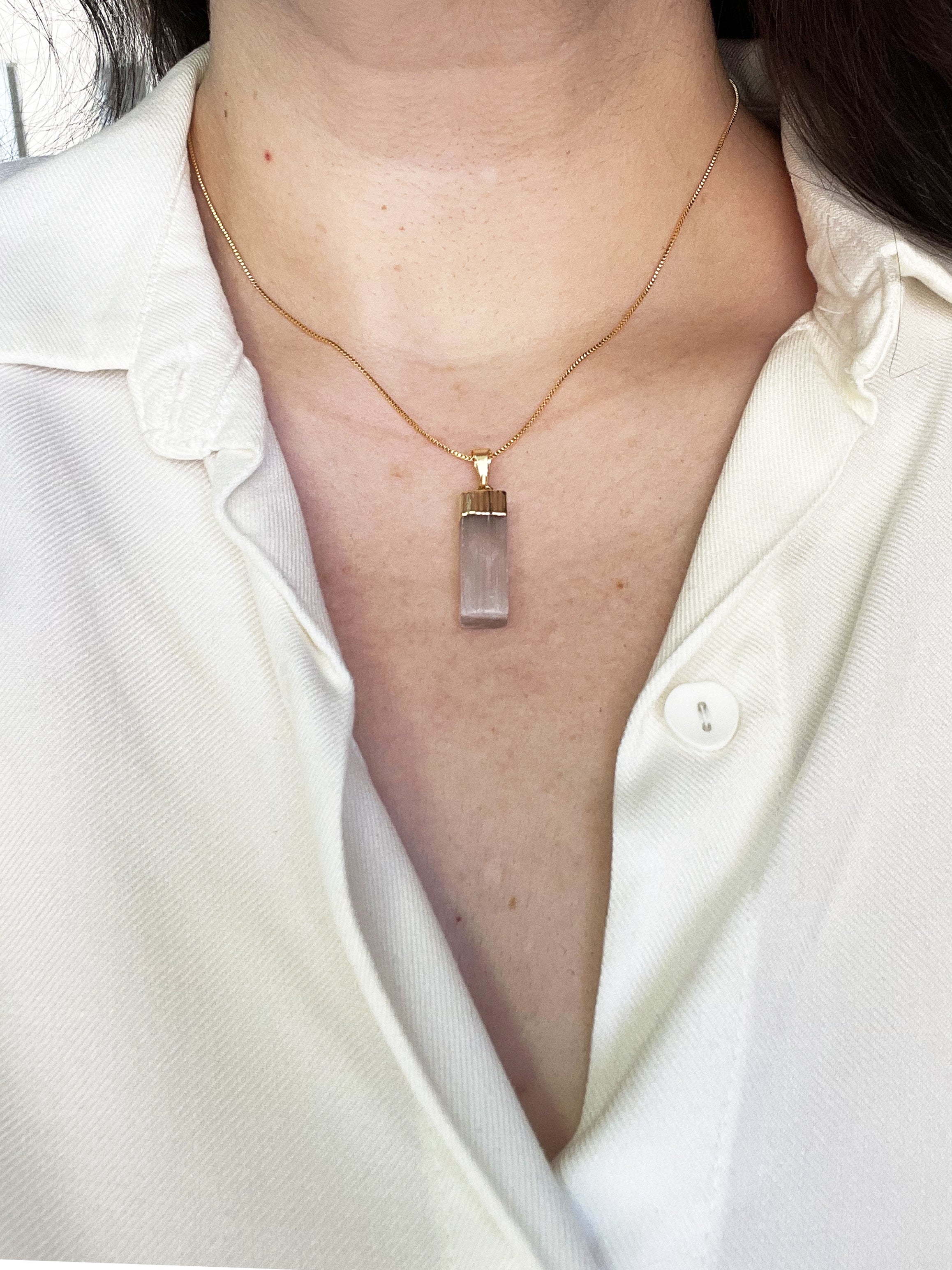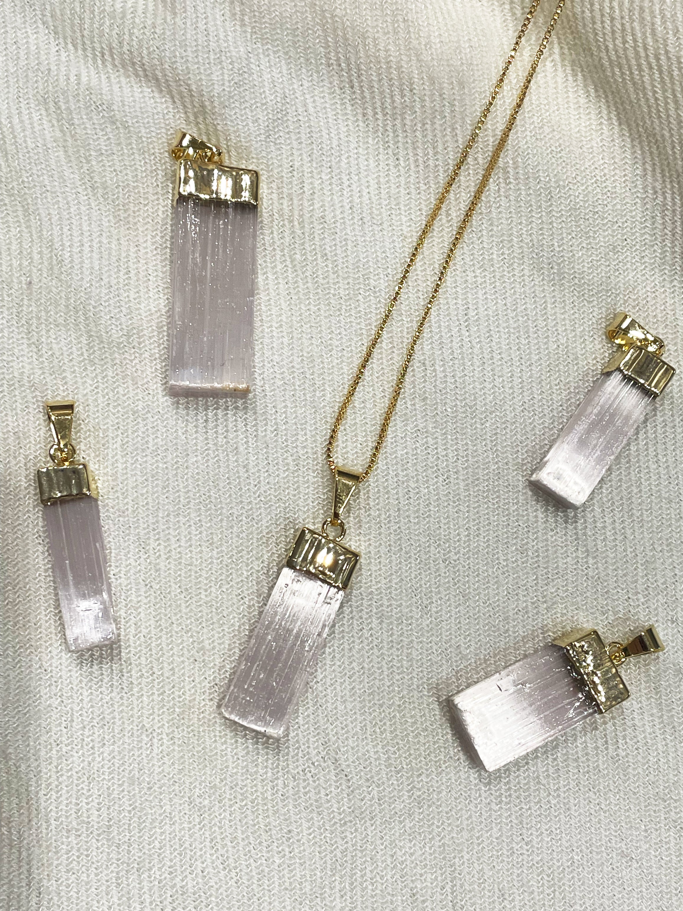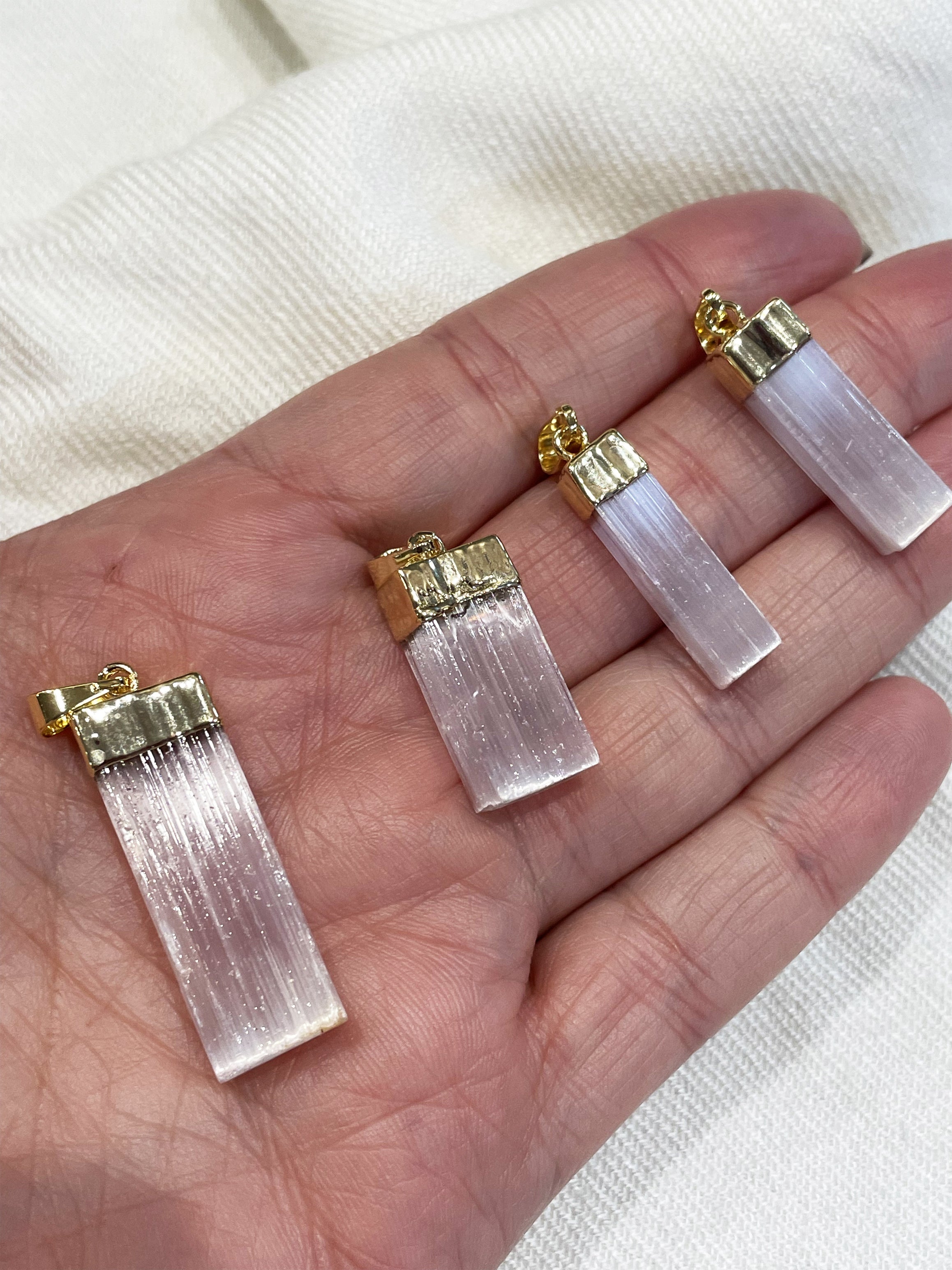 Pingente de Selenita com Banho de Ouro – Pedra da Limpeza Energética e Conexão Espiritual