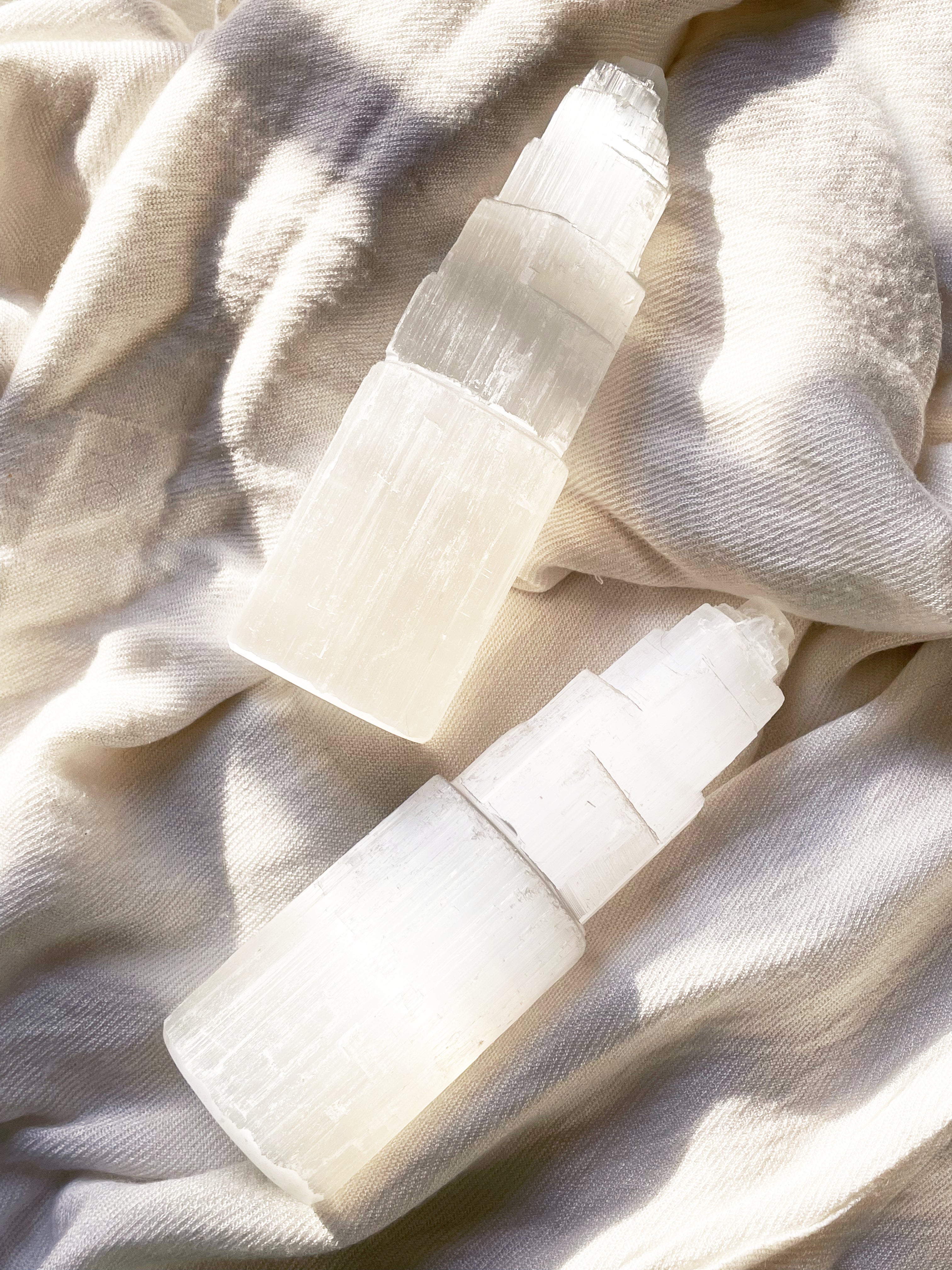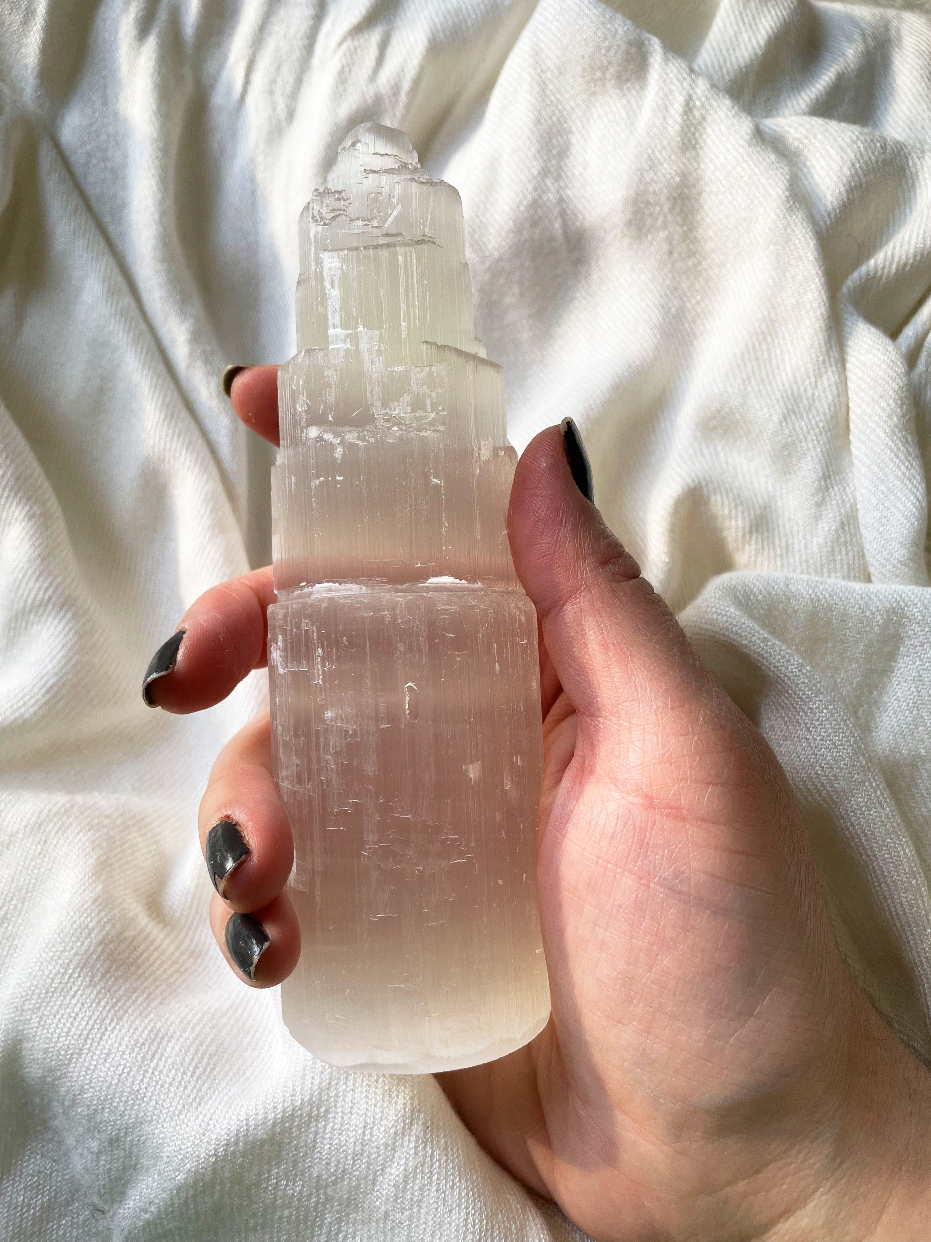 Torre de Selenita M 15cm – Pedra de Limpeza Energética, Purificação e Desobstrução
